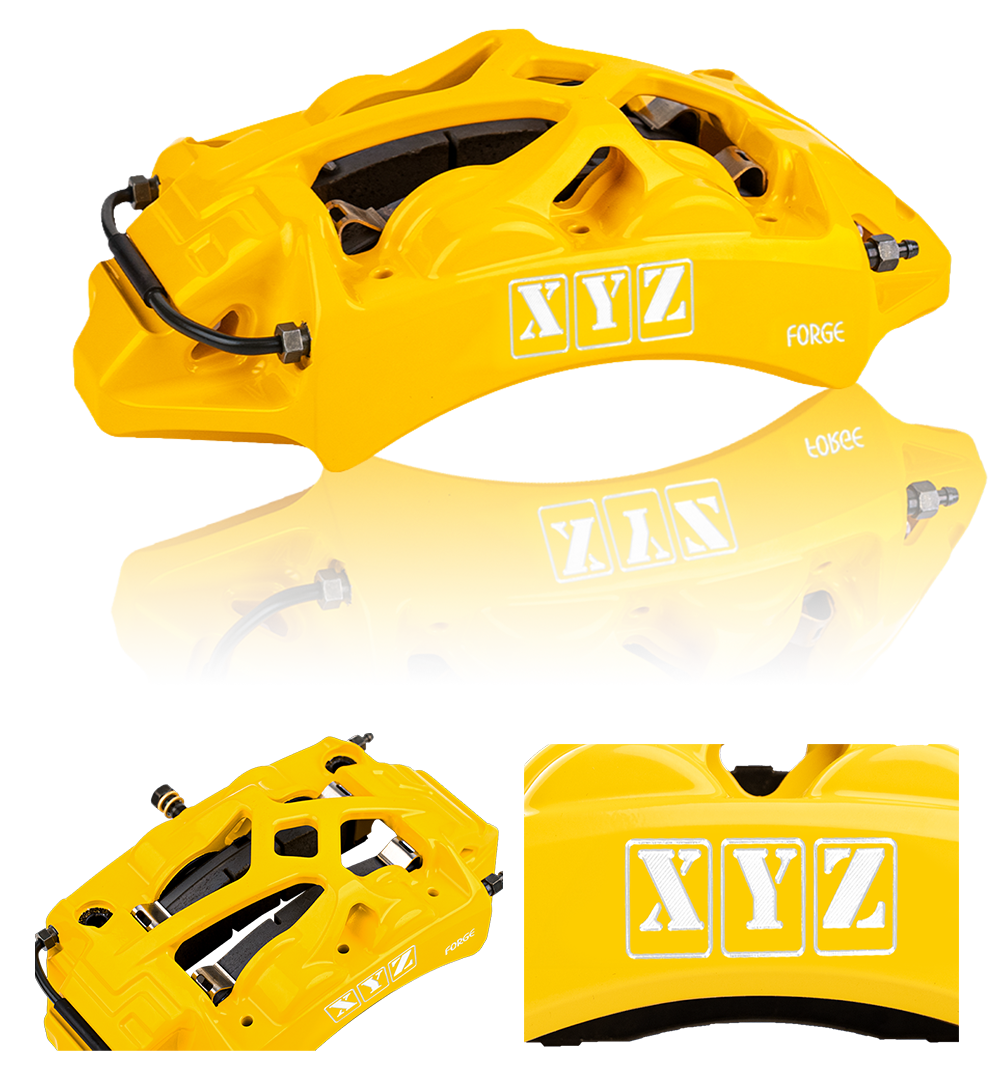 High performance aluminum 4 POT calipers The standard colors are painted red, painted yellow, painted gold, painted black and anodized black. You can choose any other painted color to fit your car.