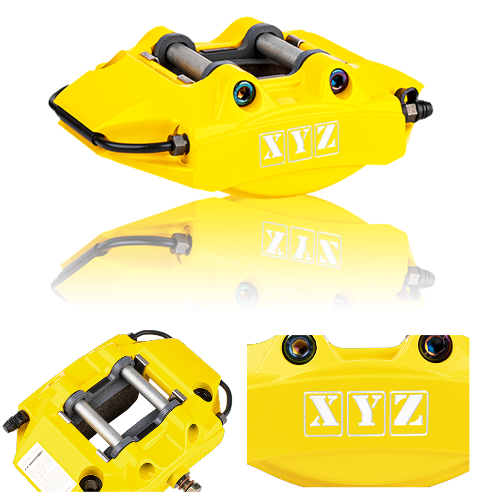 High performance aluminum 4 POT calipers The standard colors are painted red, painted yellow, painted gold, painted black and anodized black. You can choose any other painted color to fit your car.