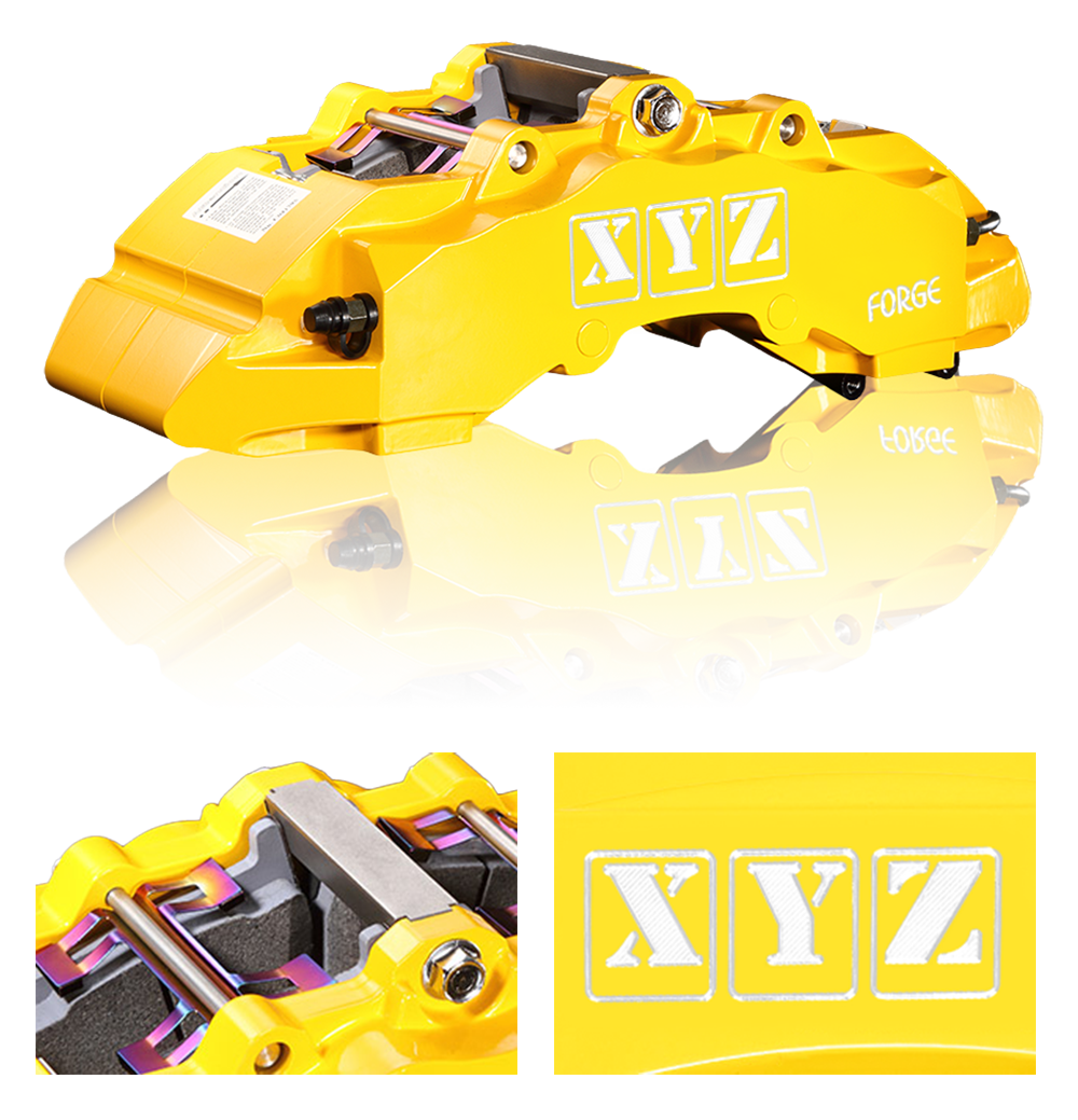 High performance aluminum 8 POT calipers The standard colors are painted red, painted yellow, painted gold, painted black and anodized black. You can choose any other painted color to fit your car.