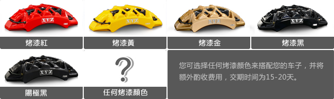 烤漆紅, 烤漆黃, 烤漆金, 烤漆黑, 陽極黑