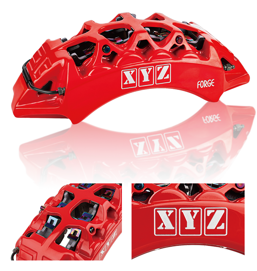 High performance aluminum 8 POT calipers The standard colors are painted red, painted yellow, painted gold, painted black and anodized black. You can choose any other painted color to fit your car.
