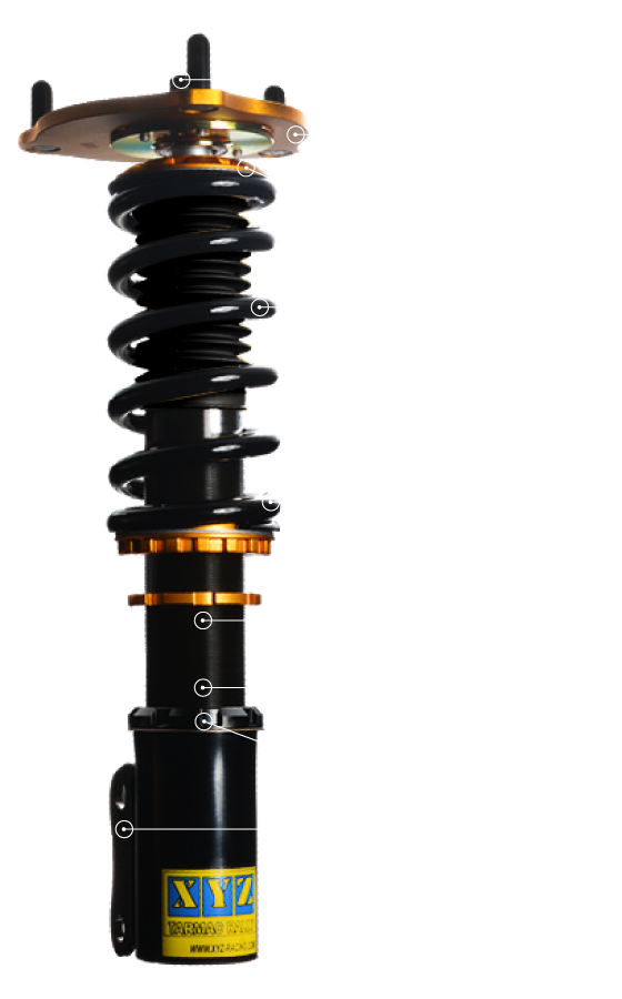 這組拉力柏油的避震器是特別設計,它可因應不同的場地所以每一組避震器的配備皆有前後魚眼上座, 可增加駕駛時的穩定度也能讓你體驗絕佳的操控感 所有麥花臣避震器搭配魚眼上座有仰角可調的功能, 雖然魚上座但基本上對所有比賽用避震器來說都是為了要增加它在特殊道路上使用的表現, 所以不建議在一般道路使用
