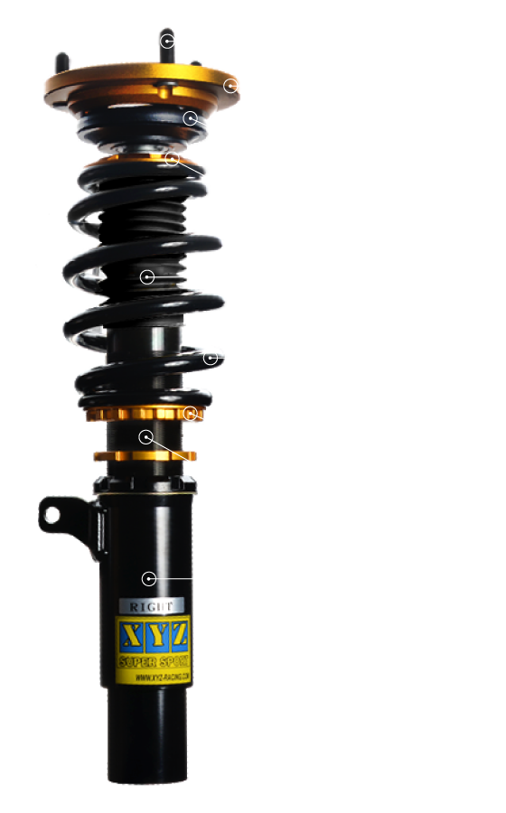 Super Sport damper has eliminated discomfort resulted from bumps or rough roads. Super Sport damper enables you to adjust the ride height and has 30-way dampening adjustment. In other words, your car with this system can be set to meet all different road conditions. This high performance damper is suitable for both weekend race and daily use.