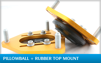 The feature of Pillowball+Rubber Top Mount is camber adjustable, combination of ride comfort like OE top mount and good handling by pillowball. Moreover, Pillowball+Rubber top mount can efficiently reduce unusual shock noise made by Pillowball top mount. Pillowball top mount is designed for racing purpose, so, it sometimes causes noise under certain circumstances, and some drivers don't like it. Pillowball+Rubber Top mount brings the best solution for noise issue and provides the best handling while driving. McPherson suspension in street purpose is suitable for Pillowball+Rubber Top Mount.